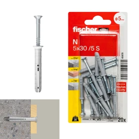 20 قطعة من سدادات فيشر N 5 x 30/5 ZK BLISTER + براغي غاطسة