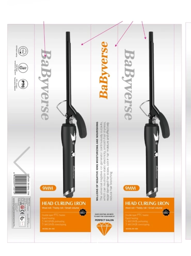 مكواة تجعيد الشعر Ba-400 (Curly 980) مع مؤشر لدرجة الحرارة